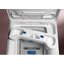 Модели с вертикальной загрузкой отличает надежное крепление барабана на двух валах. Еще одно их отличие — особая конструкция люка: на нем имеется отверстие, закрывающееся на замок. Чтобы получить доступ к барабану, необходимо открыт его и отодвинуть створку.