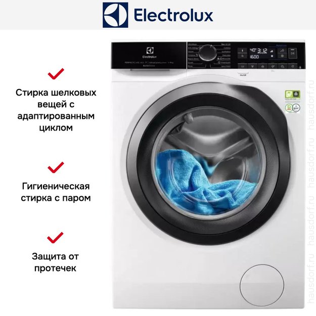 Программа стирки шелковых вещей в стиральных машинах Electrolux разработана с учетом всех особенностей этой деликатной ткани. Стирка производится в холодной воде при температуре 30 градусов и предусматривает особый режим вращения барабана и бережный отжим на скорости не более 400–800 об/мин.