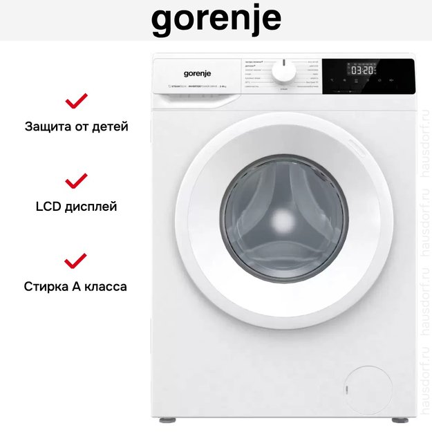 Цвет этой стиральной машинки — белый. В данной модели Gorenje используется барабан SnowFlake. Мотор: Инверторный. Благодаря ему машина работает тише, потребляет меньше электроэнергии, сохраняя при этом необходимую мощность.