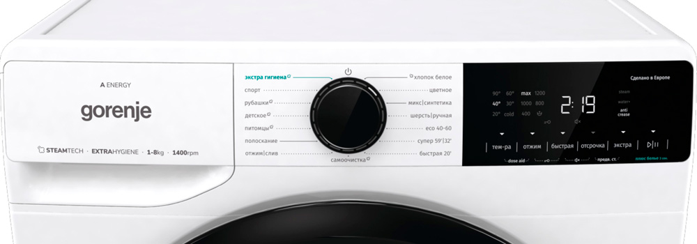 Скорость отжима достигает 1400 оборотов в минуту. Функцию отжима можно будет отключить вручную, если она вам не нужна.