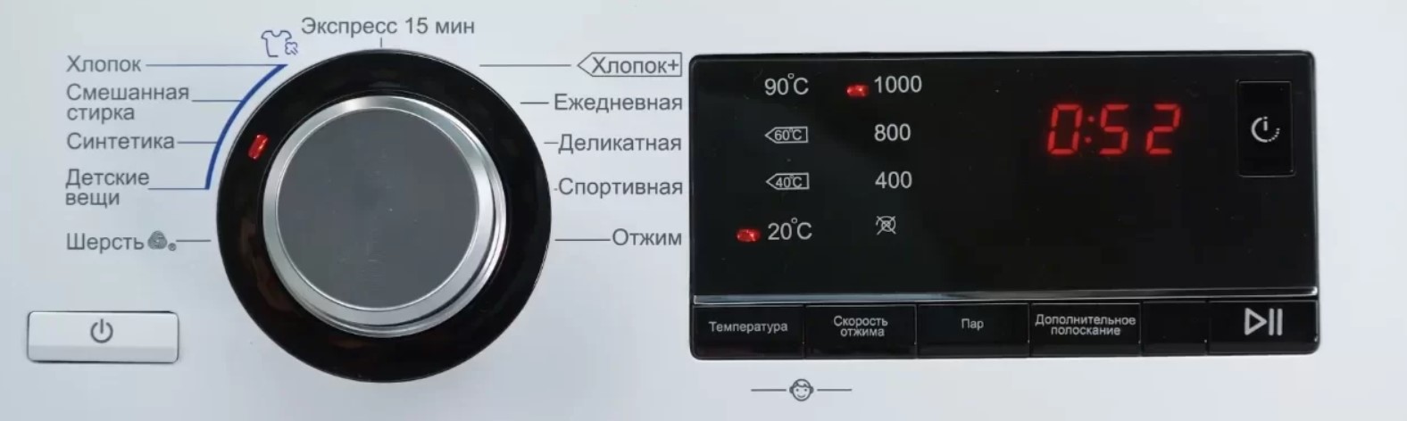 После основного этапа следует не менее трех-четырех циклов полоскания в большом количестве воды для удаления малейших следов моющего средства, а затем отжим на максимальной скорости. Допускается корректировка параметров, установленных в программе по умолчанию — например, снижение температуры для стирки цветных вещей или одежды с отделкой. Выбрать программу можно при помощи поворотного регулятора или кнопок на панели управления.
