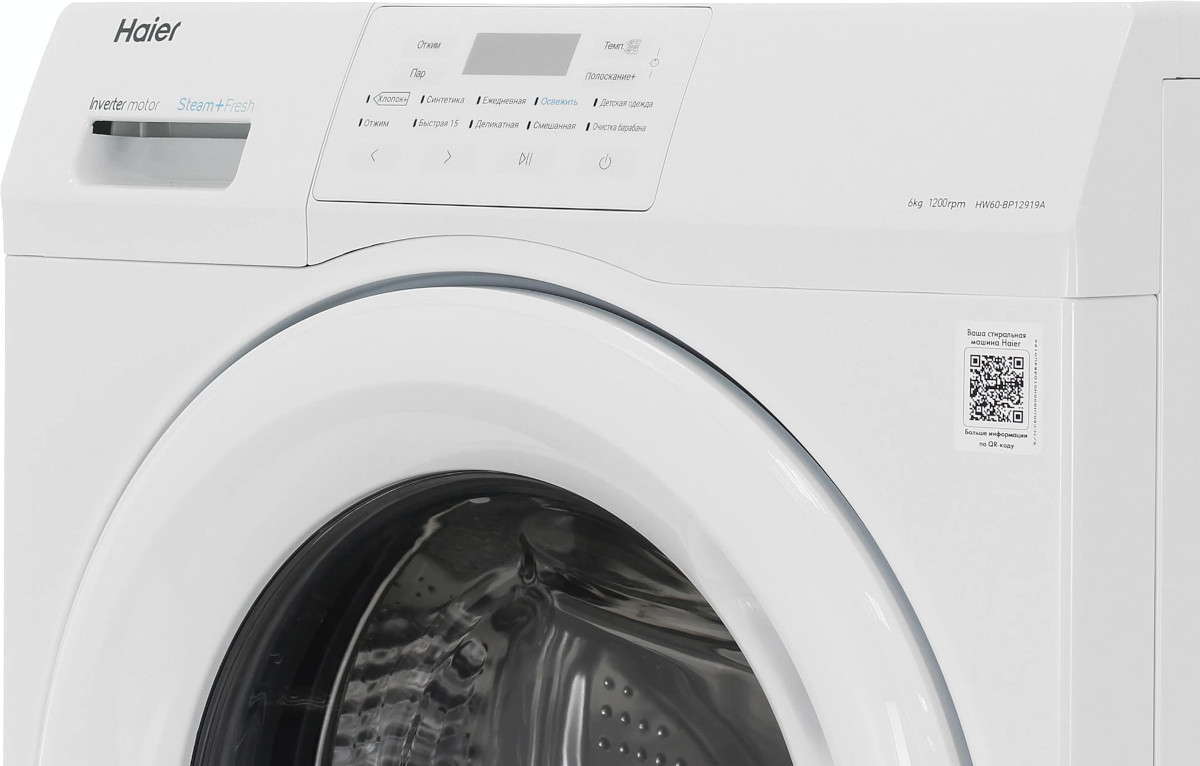 Стиральная машина Хайер HW60-BP12919A выпущена в стандартной конфигурации — устанавливается отдельно, поэтому рекомендуем заранее выделить для нее место в квартире. Благодаря классической фронтальной загрузке она привычна и удобна даже для тех, кто не очень разбирается в технике. За счет небольшой глубины данную модель предпочитают владельцы небольших квартир, студий. В барабан помещается не так много вещей за один раз, но тем, кто не любит копить вещи или просто мало стирает, будет достаточно. Максимальная загрузка: 6 кг.