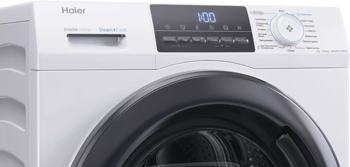 Стиральная машина Хайер HW60-BP12929AE выпущена в стандартной конфигурации — устанавливается отдельно, поэтому рекомендуем заранее выделить для нее место в квартире. Благодаря классической фронтальной загрузке она привычна и удобна даже для тех, кто не очень разбирается в технике. За счет небольшой глубины данную модель предпочитают владельцы небольших квартир, студий. В барабан помещается не так много вещей за один раз, но тем, кто не любит копить вещи или просто мало стирает, будет достаточно. Максимальная загрузка: 6 кг.