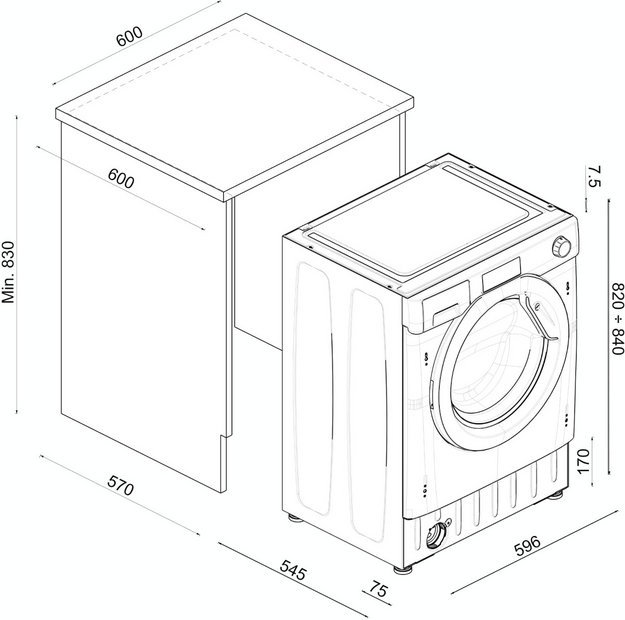 Поскольку высота стандартной столешницы составляет обычно около 85 см, в некоторых вариантах необходимо снять крышку стиральной машины, а для выравнивания по горизонтали воспользоваться регулируемыми ножками. Сзади также должен оставаться свободный доступ к шлангам и кранам, так что для подобной установки часто приобретают узкие модели.