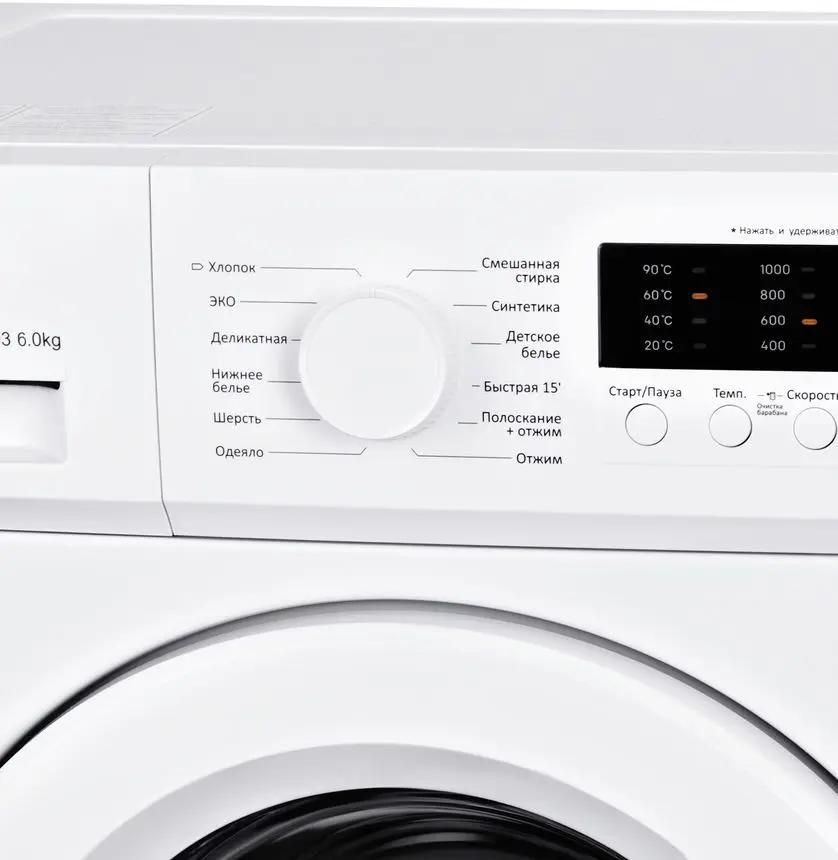 Стиральная машина Хендай WME6003 выпущена в стандартной конфигурации — устанавливается отдельно, поэтому рекомендуем заранее выделить для нее место в квартире. Благодаря классической фронтальной загрузке она привычна и удобна даже для тех, кто не очень разбирается в технике. За счет небольшой глубины данную модель предпочитают владельцы небольших квартир, студий. В барабан помещается не так много вещей за один раз, но тем, кто не любит копить вещи или просто мало стирает, будет достаточно. Максимальная загрузка: 6 кг.