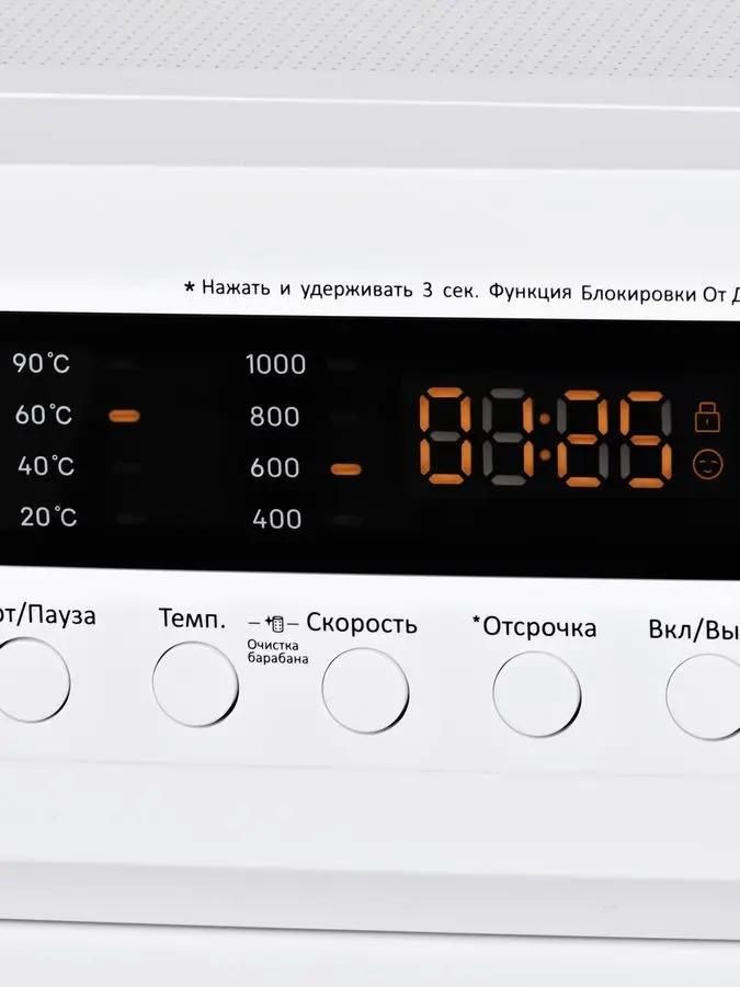 Вы можете отложить запуск, если хотите сэкономить на тарифах и включить машинку ночью, либо если планируете развесить белье сразу после возвращения работы и не ждать, пока закончится цикл. Скорость отжима достигает 1000 оборотов в минуту.