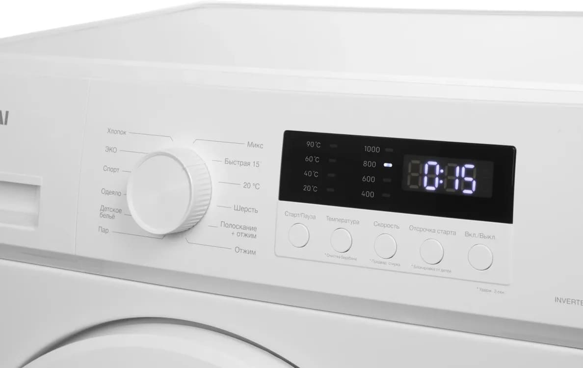 Цвет этой стиральной машинки — белый. Мотор: Инверторный. Благодаря ему машина работает тише, потребляет меньше электроэнергии, сохраняя при этом необходимую мощность.