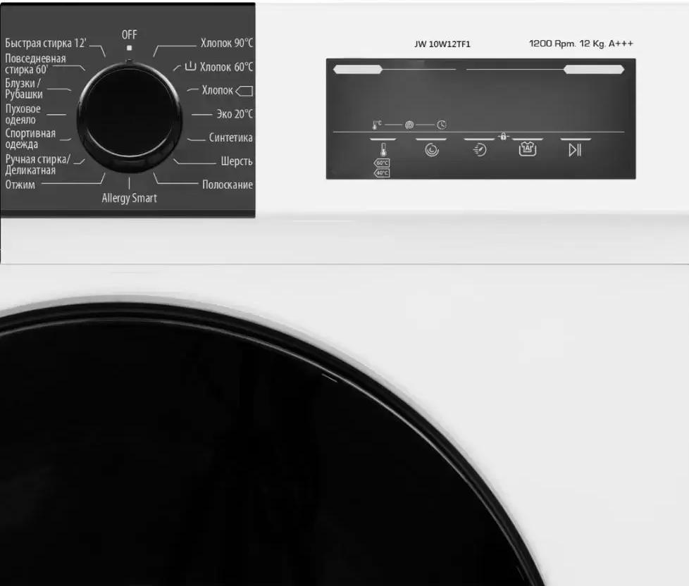 Jacky`s JW 10W12TF1 — стиральная машина с фронтальной загрузкой на 12 кг. Предусмотрено 15 программ стирки, среди которых: целенаправленное удаление сложных пятен, ночная, экономичная и деликатная стирка, режим защиты от сминания, упрощающий последующий уход за вещами. Опция отсрочки старта до 23 часов позволяет запланировать время включения устройства и составить оптимальное расписание дня.