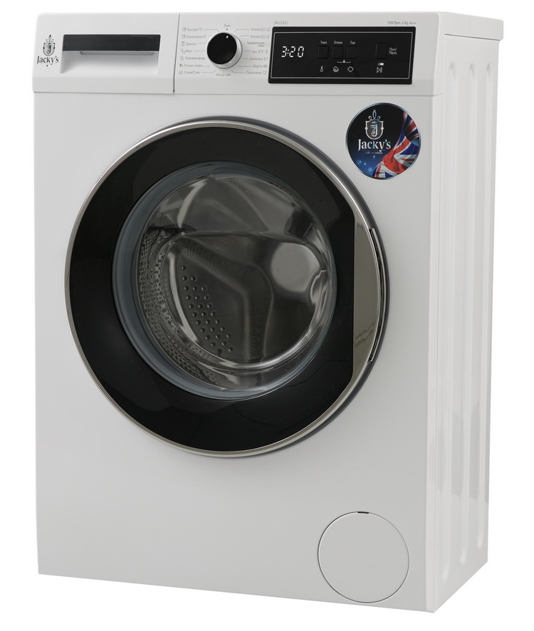 Стиральная машина Jacky’s JW 6TB21 выполнена в классическом белом цвете. Барабан во время отжима совершает до 1200 оборотов в минуту — максимальное значение достигается в интенсивных режимах, при этом вы можете регулировать скорость самостоятельно.