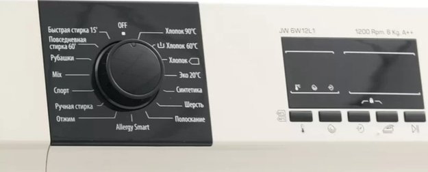 При помощи кнопок панели управления производится включение и выключение устройства, запуск и останов программ, выбираются дополнительные опции — например, предварительная стирка или дополнительное полоскание, а в некоторых случаях происходит выдача информации на дисплей. Кнопки могут быть как обычными механическими, так и сенсорными, которые активируются не нажатием, а прикосновением к экрану.