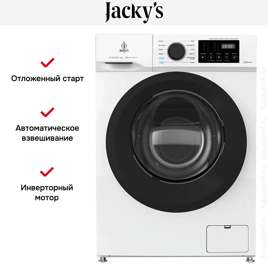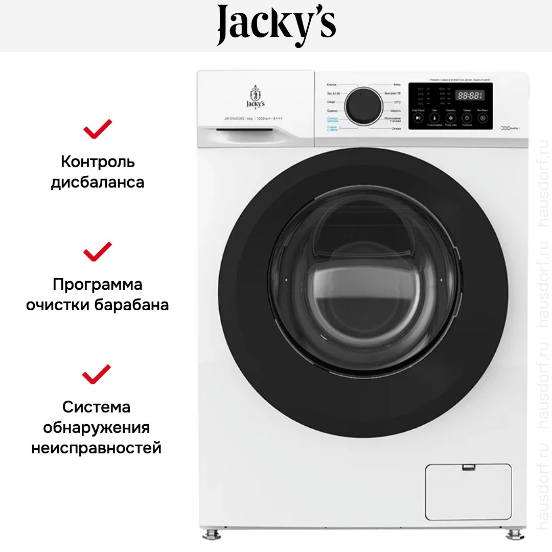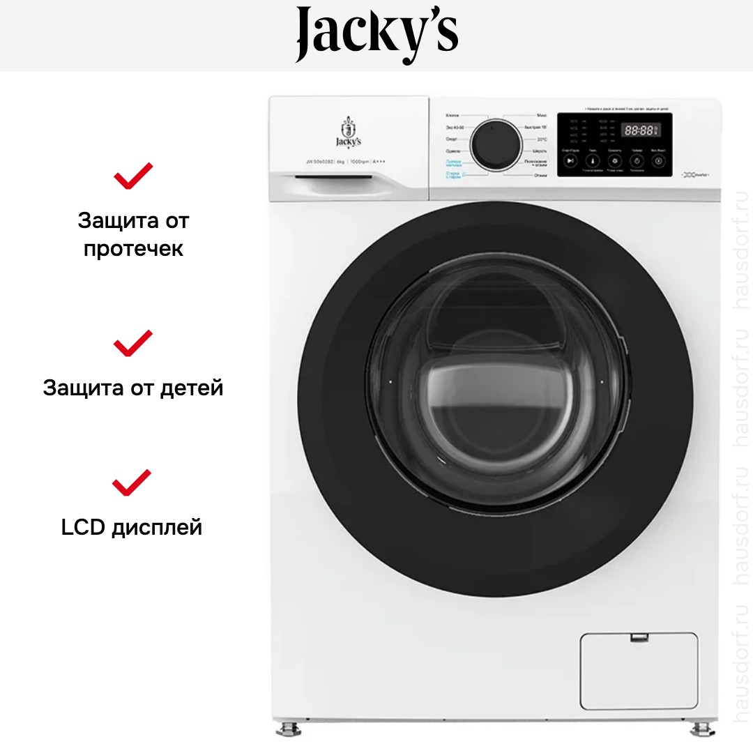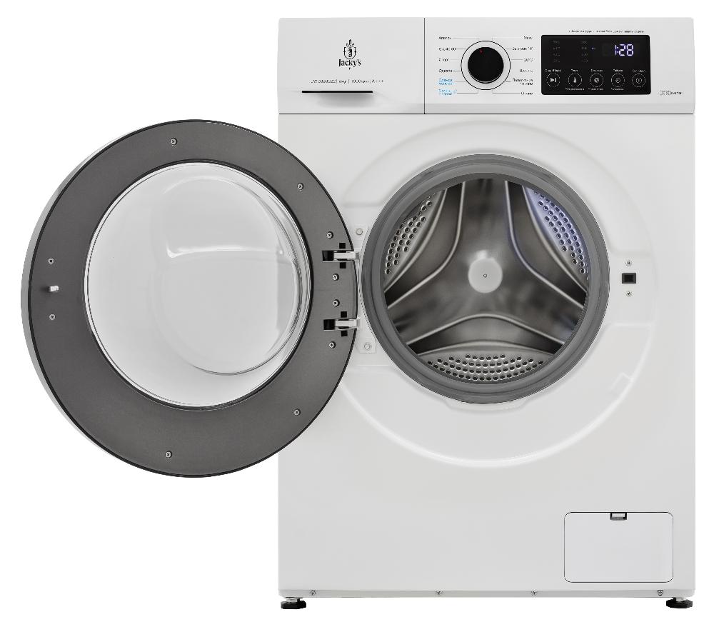Стиральная машина Джекис JW S0602B2 выпущена в стандартной конфигурации — устанавливается отдельно, поэтому рекомендуем заранее выделить для нее место в квартире. Благодаря классической фронтальной загрузке она привычна и удобна даже для тех, кто не очень разбирается в технике. За счет небольшой глубины данную модель предпочитают владельцы небольших квартир, студий. В барабан помещается не так много вещей за один раз, но тем, кто не любит копить вещи или просто мало стирает, будет достаточно. Максимальная загрузка: 6 кг.