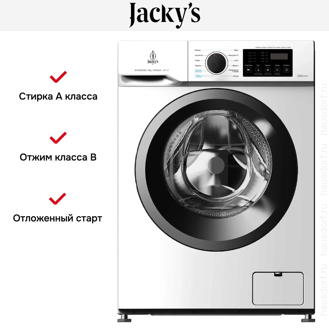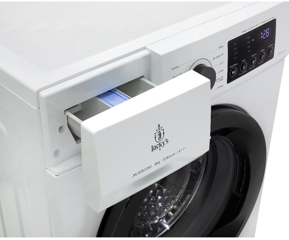 Стиральная машина Джекис JW S0822B2 выпущена в стандартной конфигурации — устанавливается отдельно, поэтому рекомендуем заранее выделить для нее место в квартире. Благодаря классической фронтальной загрузке она привычна и удобна даже для тех, кто не очень разбирается в технике. За счет небольшой глубины данную модель предпочитают владельцы небольших квартир, студий. Вместительность барабана средняя, поэтому ее хватит и для одиночек, и для семей с детьми. Максимальная загрузка: 8 кг.