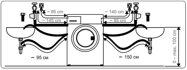 Для размещения устройство под раковиной такой размер не подойдет: чтобы любой член семьи мог без труда пользоваться раковиной, высота машинки не должна превышать 70 см.
