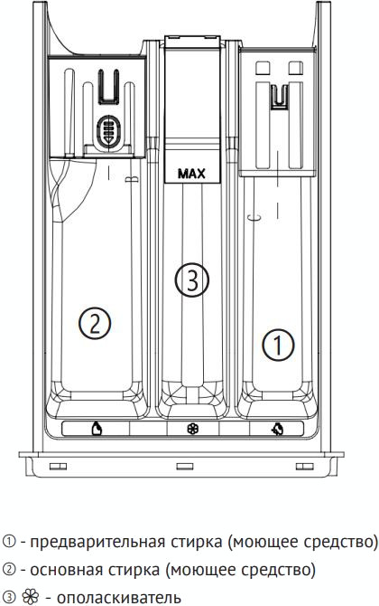 Диспенсеры располагаются в отдельной нише корпуса или рядом с лотком и легко вынимаются для очистки. Периодичность заполнения зависит от частоты стирки и используемых программ. Специальное сообщение на дисплее предупреждает о недостатке моющего средства.