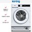 Стиральная машина Korting KWMI 14IS94 — встраиваемая модель для дома. Ее аккуратный корпус и спокойная гамма легко впишутся в интерьер любой кухни или прачечной. Конструкция предназначена для монтажа под столешницу, габариты для встраивания составляют 82.5×60×58 см, что упрощает планирование кухонного гарнитура. Угол открытия дверцы 135° и глубина с открытой дверцей 101 см обеспечивают удобный доступ к барабану при загрузке и выгрузке.