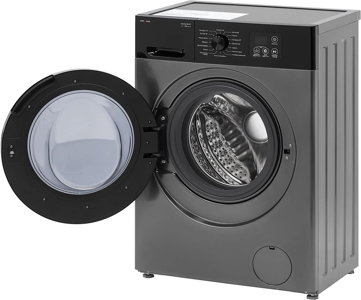 Цвет этой стиральной машинки — серый. Мотор: Инверторный. Благодаря ему машина работает тише, потребляет меньше электроэнергии, сохраняя при этом необходимую мощность.