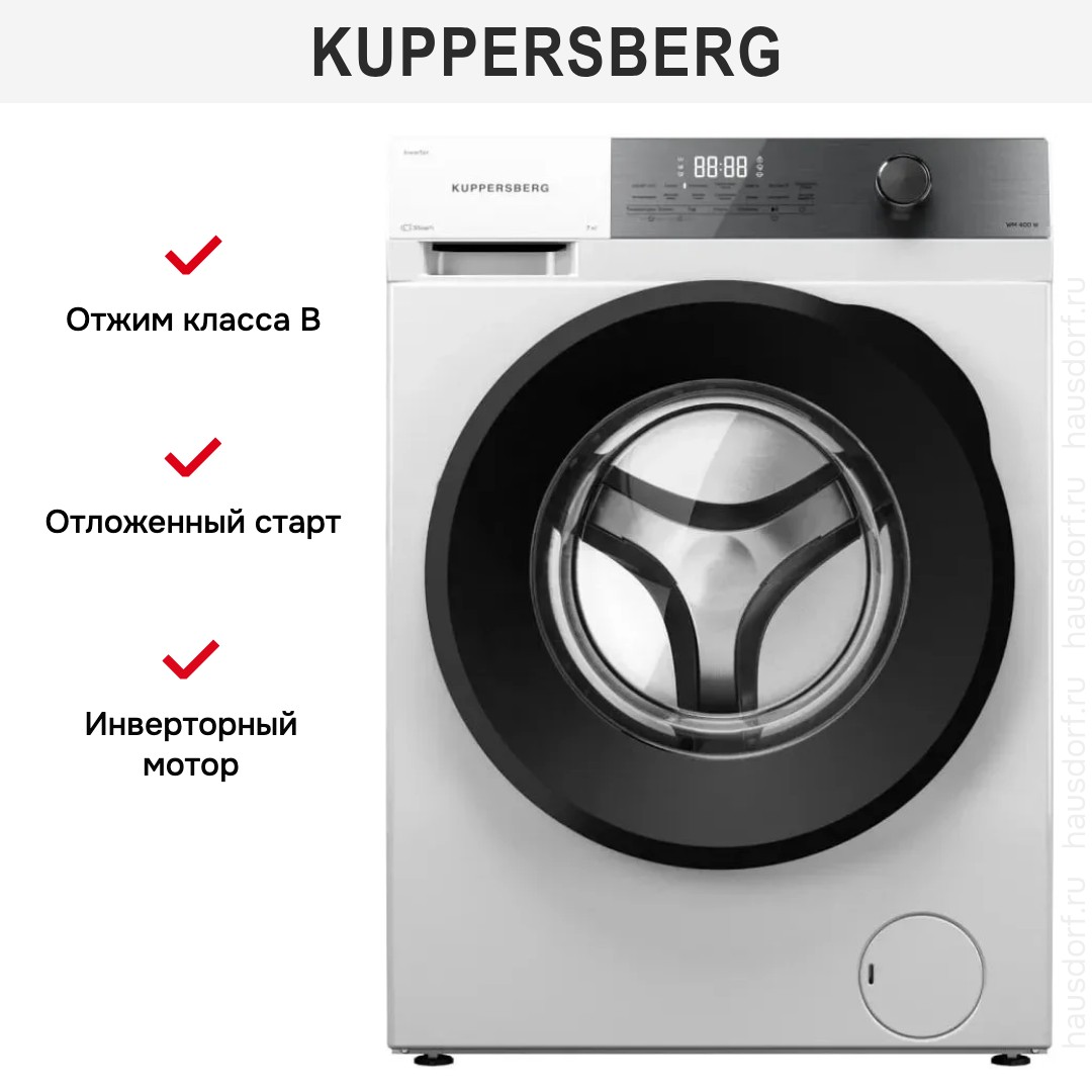 Стиральная машина Kuppersberg WM 400 W — отличное решение для дома с современным дизайном и продуманным набором функций. При отдельностоящей установке ее легко разместить в любом помещении. Фронтальная загрузка и черный люк на белом корпусе создают стильный контраст. Габариты 85,5×59,5×47 см обеспечивают компактность при стандартной высоте. Диаметр загрузочного люка 34 см упрощает закладку крупной одежды и постельного белья.
