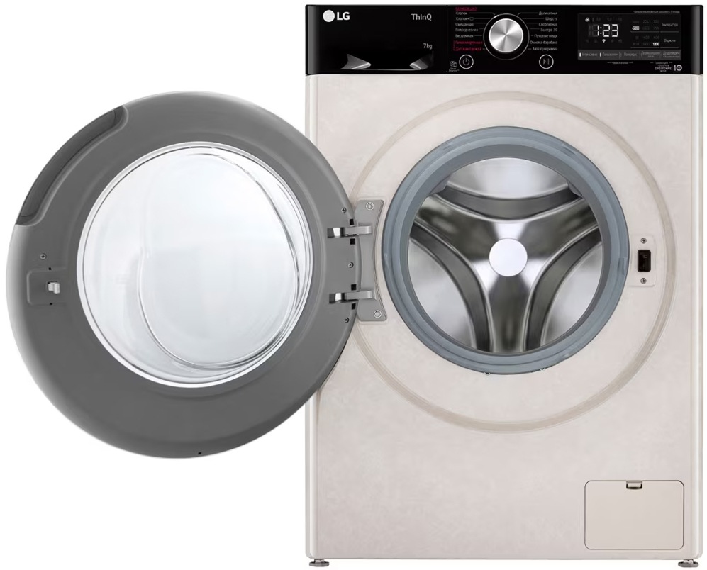 Цвет этой стиральной машинки — бежевый. Мотор: Инверторный. Благодаря ему машина работает тише, потребляет меньше электроэнергии, сохраняя при этом необходимую мощность.