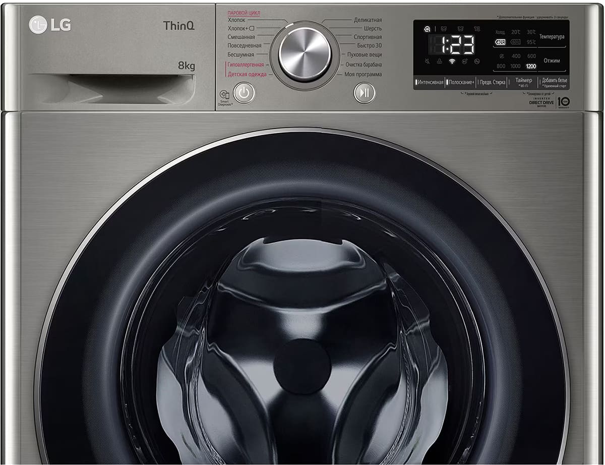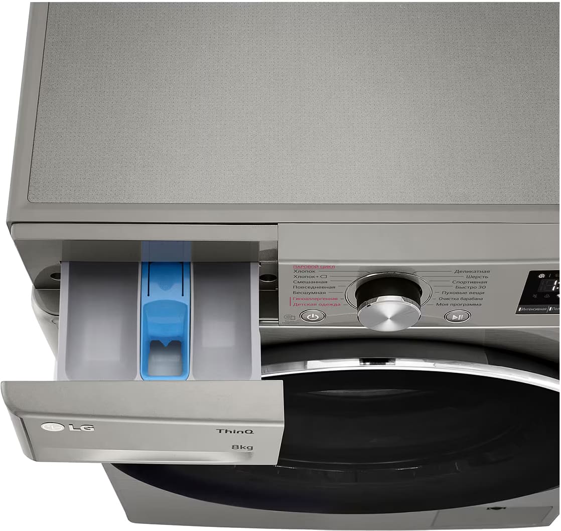 Цвет этой стиральной машинки — серебристый. Мотор: Инверторный. Благодаря ему машина работает тише, потребляет меньше электроэнергии, сохраняя при этом необходимую мощность.