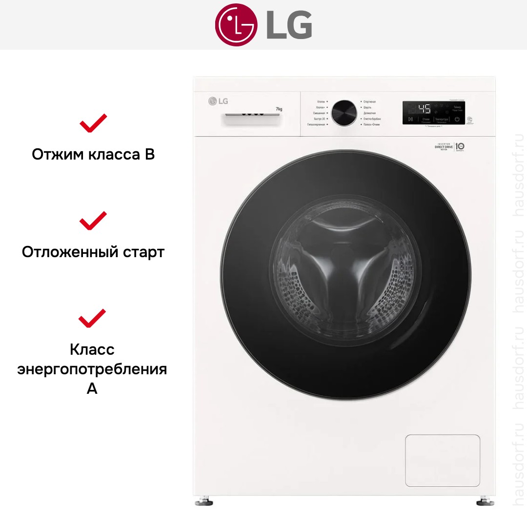 Цвет этой стиральной машинки — белый. Мотор: Инверторный. Благодаря ему машина работает тише, потребляет меньше электроэнергии, сохраняя при этом необходимую мощность.