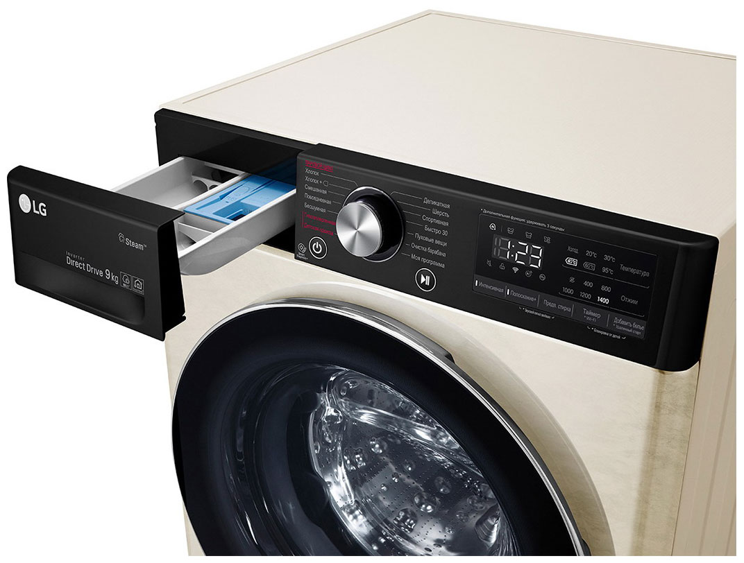 Стиральная машина Лджи F4V5VS9B выпущена в стандартной конфигурации — устанавливается отдельно, поэтому рекомендуем заранее выделить для нее место в квартире. Благодаря классической фронтальной загрузке она привычна и удобна даже для тех, кто не очень разбирается в технике. За счет небольшой глубины данную модель предпочитают владельцы небольших квартир, студий. В барабан помещается не так много вещей за один раз, но тем, кто не любит копить вещи или просто мало стирает, будет достаточно.