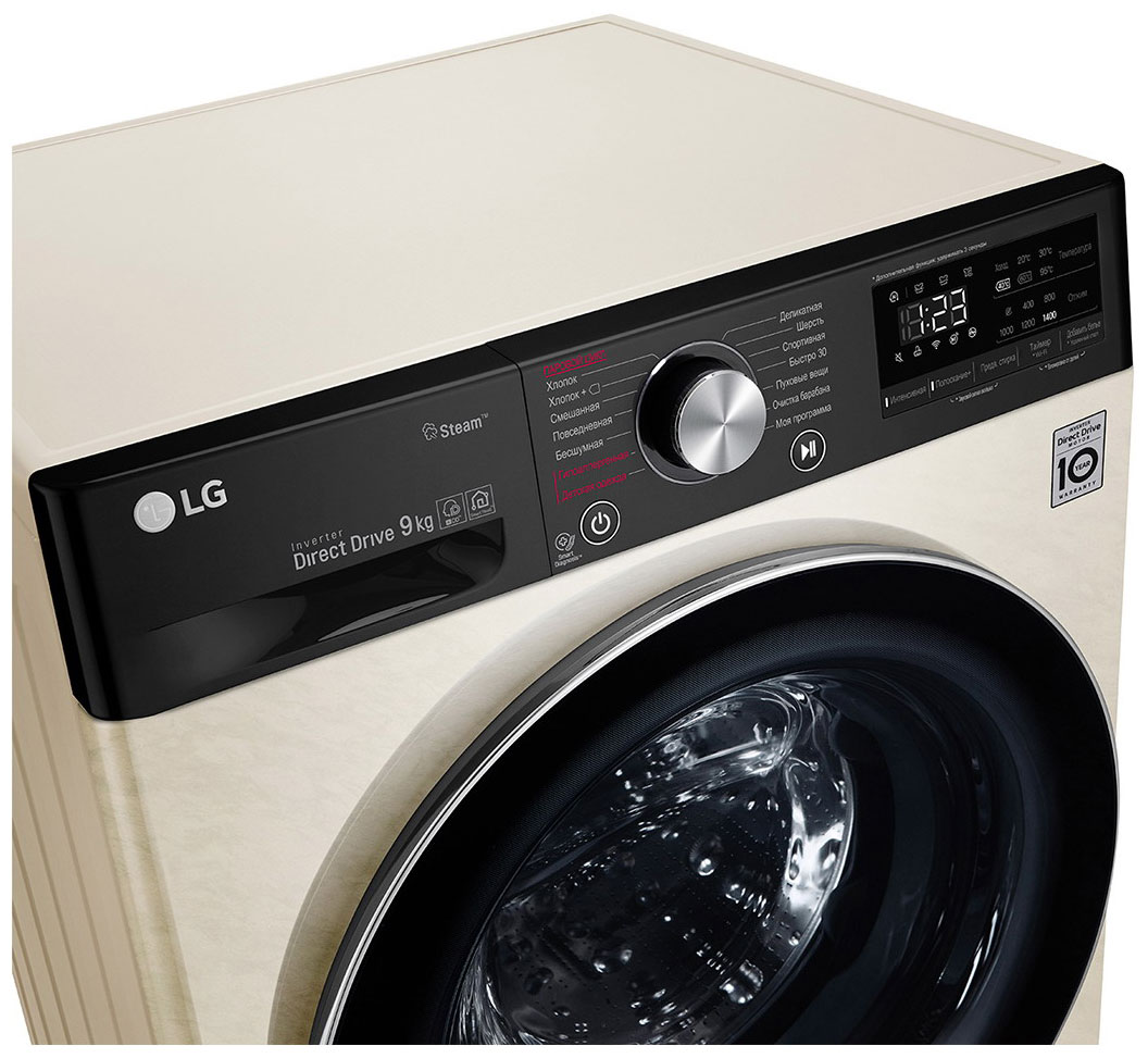 Цвет этой стиральной машинки — бежевый. Мотор: Инверторный. Благодаря ему машина работает тише, потребляет меньше электроэнергии, сохраняя при этом необходимую мощность.