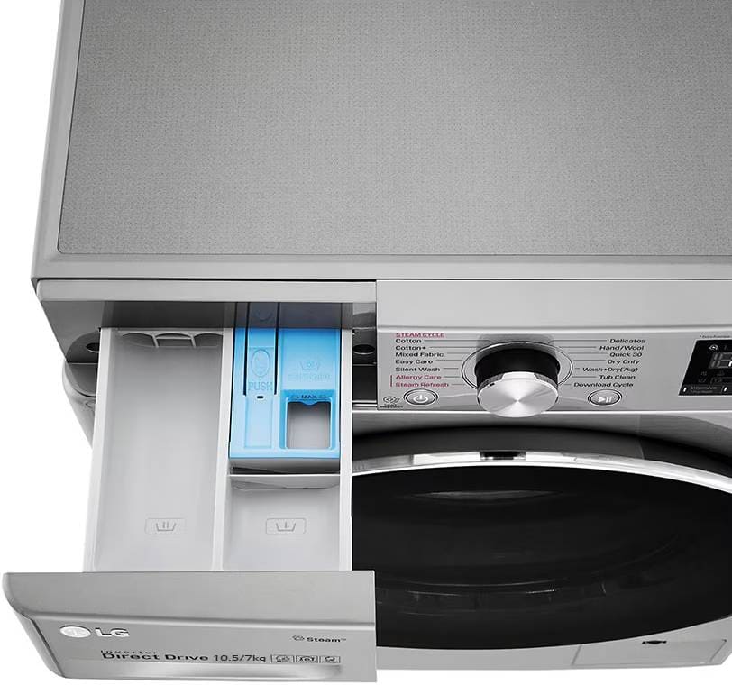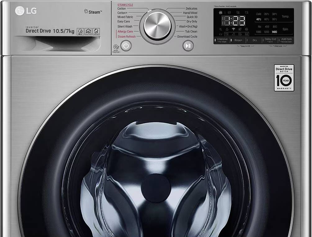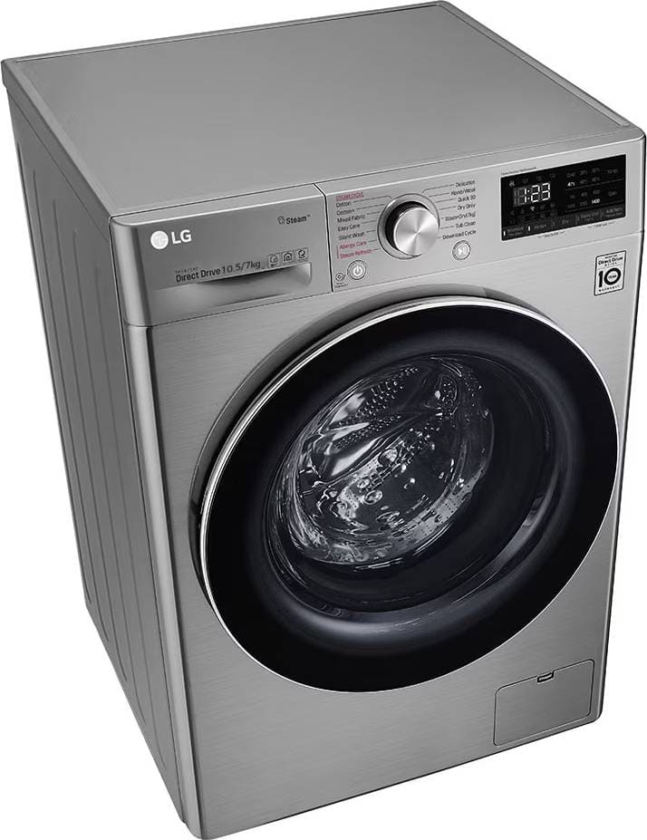 Стиральная машина Лджи F4V5RGP2T выпущена в стандартной конфигурации — устанавливается отдельно, поэтому рекомендуем заранее выделить для нее место в квартире. Благодаря классической фронтальной загрузке она привычна и удобна даже для тех, кто не очень разбирается в технике. В барабан помещается большое количество белья, что подойдет большим семьям или тем, кто часто стирает объемные вещи — постельное белье, верхнюю одежду. Максимальная загрузка: 10.5 кг.