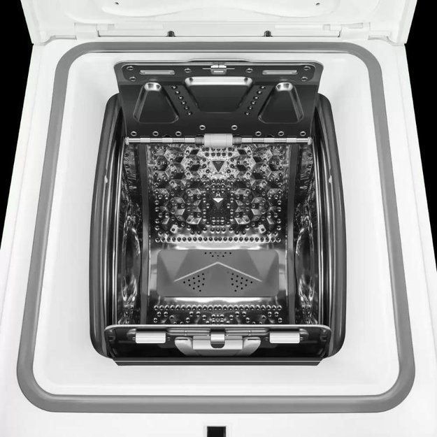 Модели с вертикальной загрузкой отличает надежное крепление барабана на двух валах. Еще одно их отличие — особая конструкция люка: на нем имеется отверстие, закрывающееся на замок. Чтобы получить доступ к барабану, необходимо открыт его и отодвинуть створку.