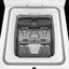 Модели с вертикальной загрузкой отличает надежное крепление барабана на двух валах. Еще одно их отличие — особая конструкция люка: на нем имеется отверстие, закрывающееся на замок. Чтобы получить доступ к барабану, необходимо открыт его и отодвинуть створку.