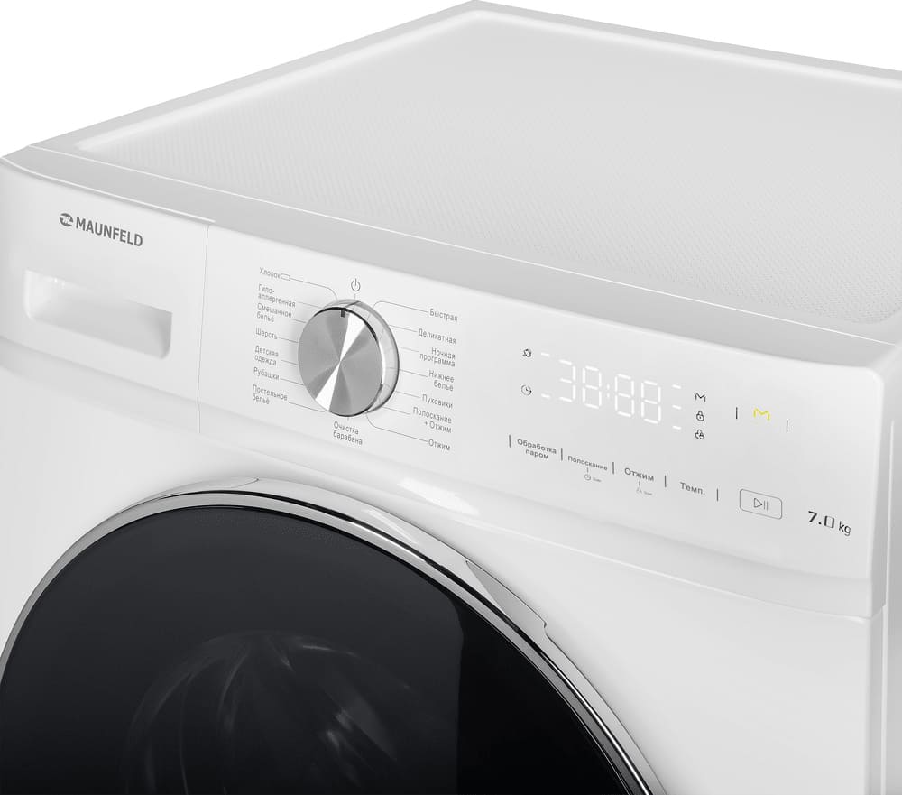 Стиральная машина Маунфилд MFWM127IWH053 выпущена в стандартной конфигурации — устанавливается отдельно, поэтому рекомендуем заранее выделить для нее место в квартире. Благодаря классической фронтальной загрузке она привычна и удобна даже для тех, кто не очень разбирается в технике. За счет небольшой глубины данную модель предпочитают владельцы небольших квартир, студий. Вместительность барабана средняя, поэтому ее хватит и для одиночек, и для семей с детьми. Максимальная загрузка: 7 кг.