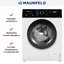 Стиральная машина Maunfeld MFWM127IWHD представляет собой удачное сочетание лаконичного внешнего оформления и продуманной функциональности, ориентированное на комфорт повседневного использования в квартире. Элегантный белый корпус с контрастной чёрной люком создаёт современный акцент, который легко впишется в интерьер любой кухни или прачечной; наклонная панель управления облегчает считывание информации с цифрового дисплея и работу с поворотным программатором и кнопками, а продуманная эргономика упрощает загрузку и обслуживание. Компактные габариты (85×59.5×44 см) и глубина с открытой дверцей 87 см позволяют установить агрегат в стеснённых условиях, при этом высота вместе с регулируемыми ножками даёт возможность выравнивания на неровной поверхности. Вместимость до 7 кг удовлетворит потребности небольшой семьи, а инверторный мотор обеспечивает плавный разгон, экономичную работу и долговечность при номинальной мощности 1.7 кВт. Класс энергоэффективности A+++ и невысокое годовое потребление электроэнергии в 174 кВт·ч гарантируют минимальные расходы, а расход воды 11 500 л в год соответствует разумному балансу водопотребления и качества очистки. Управление циклом реализовано с помощью 12 режимов: хлопок, смешанное бельё, деликатная шерсть, режим без отжима, экономичная стирка, супербыстрая программа 15 минут, предварительная стирка, режим для постельного белья, дополнительное полоскание для свежести, специальные опции для спортивной и детской одежды, функция освежения и разглаживания паром, а также отдельная программа при 20°C — все они позволяют адаптировать процесс под материал и степень загрязнения. Выбор температуры и скорости отжима до 1200 об/мин выполняется вручную, есть возможность полностью отключить отжим, а индикация на дисплее показывает заданную температуру, обороты, оставшееся время, статус отсрочки старта и блокировку от детей. Полезные опции включают отложенный запуск, автоматическую очистку барабана и стирку холодной водой, контроль дисбаланса и систему самодиагностики, облегчающую поиск и устранение неисправностей. Конструктивно машина оснащена тремя отделениями для моющих средств, защитной блокировкой загрузочного люка и детским замком на панели, что повышает безопасность при эксплуатации. Номинальные электрические параметры 220-240 В, 50 Гц и предохранитель 10 А соответствуют бытовым стандартам, а угол открытия дверцы 135° обеспечивает удобство загрузки. Уровень шума при стирке на уровне 60 дБ и при отжиме 76 дБ подходит для жилых помещений, где важен баланс между производительностью и акустическим комфортом. В целом этот аппарат предлагает гармоничное сочетание дизайна, набора программ и технических решений для тех, кто ценит экономичность, удобство и широкий функционал в компактном корпусе.