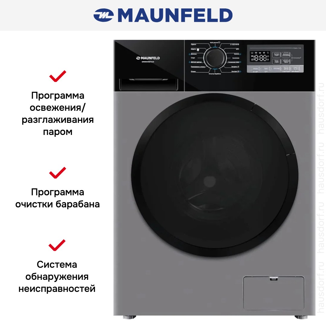 Стиральная машина Maunfeld MFWM1410STSL03 представляет собой стильное и функциональное решение для дома: отдельностоящая фронтальная модель в серебристом корпусе с черным люком сочетает современный внешний вид и продуманную эргономику, позволяя вписаться в интерьер любой техники. Простая в управлении электронная панель с поворотным программатором и кнопками дополнена цифровым дисплеем, который информирует о ходе выбранного цикла, температуре, скорости отжима и оставшемся времени; предусмотрена индикация блокировки дверцы и детской защиты, отсрочки старта и дополнительного полоскания. Вместительный барабан рассчитан на максимальную загрузку 10 кг, что удобно для больших семей и при частой стирке объемных вещей, включая одеяла; число доступных режимов — 16, среди которых стандартные для хлопка, синтетики и смешанного белья, деликатные варианты для шерсти и режим без отжима, экспресс-программы для быстрой повседневной обработки (включая супербыструю за 15 минут), экономичные и мини-циклы, а также предварительная стирка для сильных загрязнений. Для ухода за деликатными и спортивными изделиями есть специальные опции для джинсов, спортивной экипировки и детских вещей; предусмотрена функция освежения с паром и дополнительная опция стирки при 20°C, выбор температуры осуществляется вручную, как и регулировка скорости, максимальный отжим достигает 1400 об/мин с возможностью его отключения. Технологическая база включает инверторный мотор, что обеспечивает плавную работу и долговечность при умеренном энергопотреблении; по классу эффективности модель отмечена A+++ при классе стирки A и классе отжима B. Эксплуатационные показатели впечатляют: потребление энергии в расчете на год — 167 кВт·ч, расход воды — примерно 13 200 литров в год, при номинальной мощности 1.95 кВт и питании 220-240 В/50 Гц; энергосбережение сочетается с высоким уровнем безопасности — блокировка управления для детей и защитная замка люка исключают случайное открытие, а встроенная система самодиагностики оперативно сообщает о неисправностях. Практичные решения для установки включают возможность монтажа в колонну, регулируемые ножки для выравнивания, угол открытия дверцы 135° и глубину с открытой створкой 102.5 см, что облегчает загрузку и выгрузку белья; в комплекте предусмотрено три отделения для моющих средств и программа для очистки барабана, обеспечивающая гигиену внутренней поверхности. Уровень шума при работе составляет 68 дБ, при отжиме — 79 дБ, вес агрегата 62.8 кг (брутто 67 кг), размеры 84.5×59.5×61 см и габариты упаковки 88×67×66 см позволяют спланировать доставку и размещение. Дополнительные возможности включают стирку холодной водой и функцию дополнительного полоскания, а также отложенный старт от 1 до 24 часов, что дает гибкость при составлении домашнего графика. Эта машина обеспечивает сочетание вместительности, разнообразия режимов и продуманного управления, предлагая надежность и удобство для повседневных задач по уходу за одеждой и крупными изделиями.