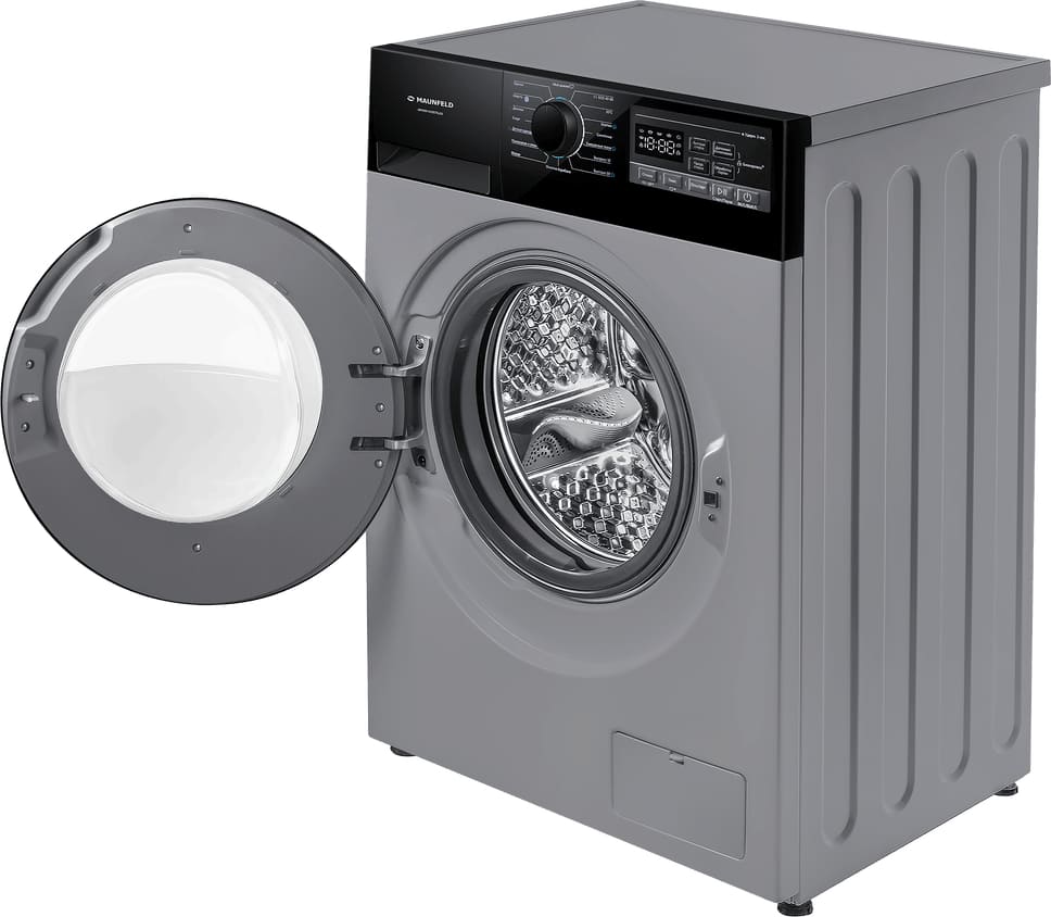 Стиральная машина Маунфилд MFWM1410STSL03 выпущена в стандартной конфигурации — устанавливается отдельно, поэтому рекомендуем заранее выделить для нее место в квартире. Благодаря классической фронтальной загрузке она привычна и удобна даже для тех, кто не очень разбирается в технике. В барабан помещается большое количество белья, что подойдет большим семьям или тем, кто часто стирает объемные вещи — постельное белье, верхнюю одежду. Максимальная загрузка: 10 кг.