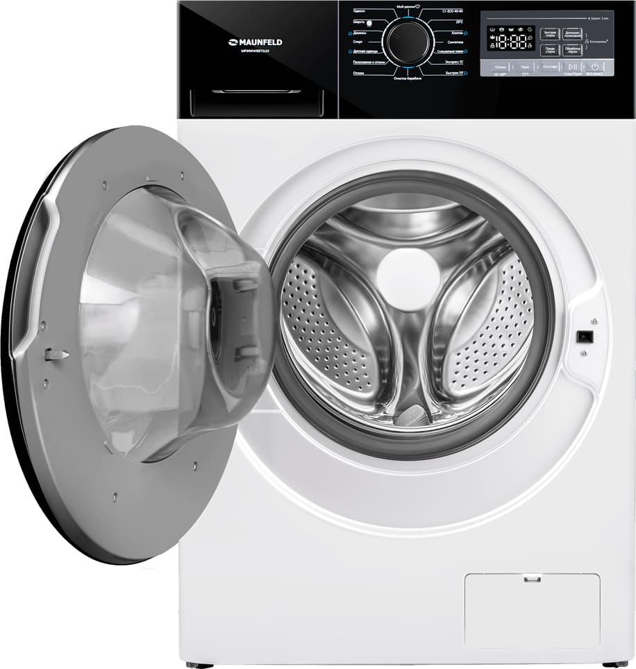 Стиральная машина Маунфилд MFWM1410STWH03 выпущена в стандартной конфигурации — устанавливается отдельно, поэтому рекомендуем заранее выделить для нее место в квартире. Благодаря классической фронтальной загрузке она привычна и удобна даже для тех, кто не очень разбирается в технике. В барабан помещается большое количество белья, что подойдет большим семьям или тем, кто часто стирает объемные вещи — постельное белье, верхнюю одежду. Максимальная загрузка: 10 кг.