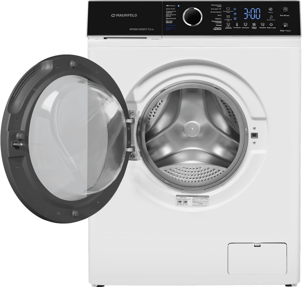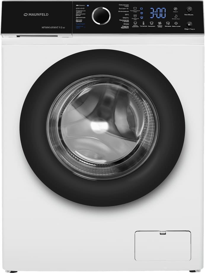 Стиральная машина Маунфилд MFWM149IWHT выпущена в стандартной конфигурации — устанавливается отдельно, поэтому рекомендуем заранее выделить для нее место в квартире. Благодаря классической фронтальной загрузке она привычна и удобна даже для тех, кто не очень разбирается в технике. Вместительность барабана средняя, поэтому ее хватит и для одиночек, и для семей с детьми. Максимальная загрузка: 9 кг.