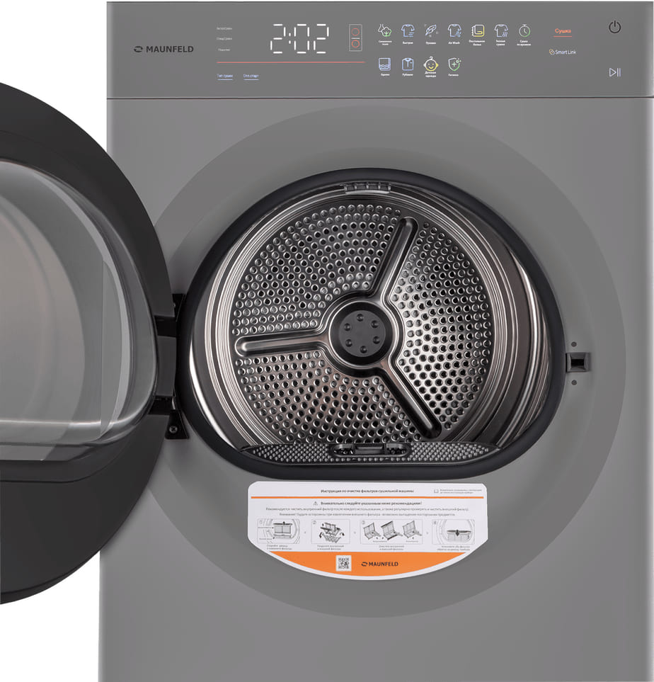 Принцип работы в целом такой же, как в сушильной машине: вещи обрабатываются потоками теплого воздуха, барабан вращается на разной скорости и в разном направлении, чтобы просушить все элементы.