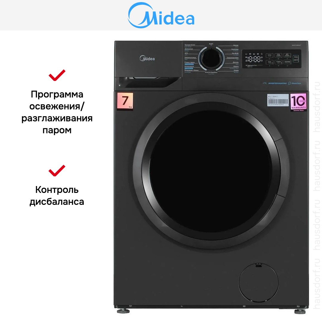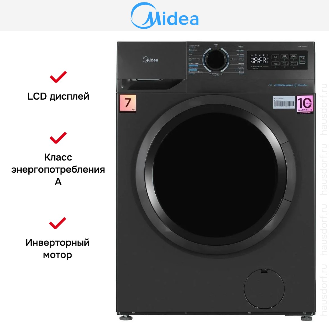 Стиральная машина Мидеа MF01712BS40/T выпущена в стандартной конфигурации — устанавливается отдельно, поэтому рекомендуем заранее выделить для нее место в квартире. Благодаря классической фронтальной загрузке она привычна и удобна даже для тех, кто не очень разбирается в технике. За счет небольшой глубины данную модель предпочитают владельцы небольших квартир, студий. Вместительность барабана средняя, поэтому ее хватит и для одиночек, и для семей с детьми. Максимальная загрузка: 7 кг.