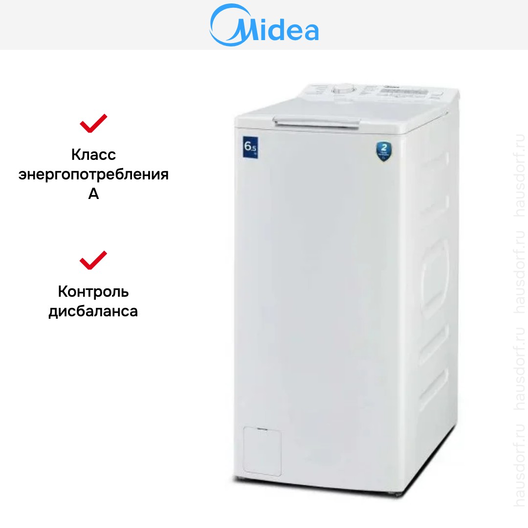 Стиральная машина Midea MFE11W65-W C — компактный вертикальный агрегат в белом корпусе, выполненный в лаконичном минималистичном стиле. Ее габариты 87.5×40×61 см и высота 87.5 см делают модель удобной для размещения в ограниченном пространстве, при этом верхняя загрузка обеспечивает быстрый доступ к барабану. Отдельностоящий корпус в нейтральном цвете легко впишется в интерьер кухни, санузла или постирочной, а аккуратные линии передней панели сохраняют опрятный вид даже при частом использовании.
