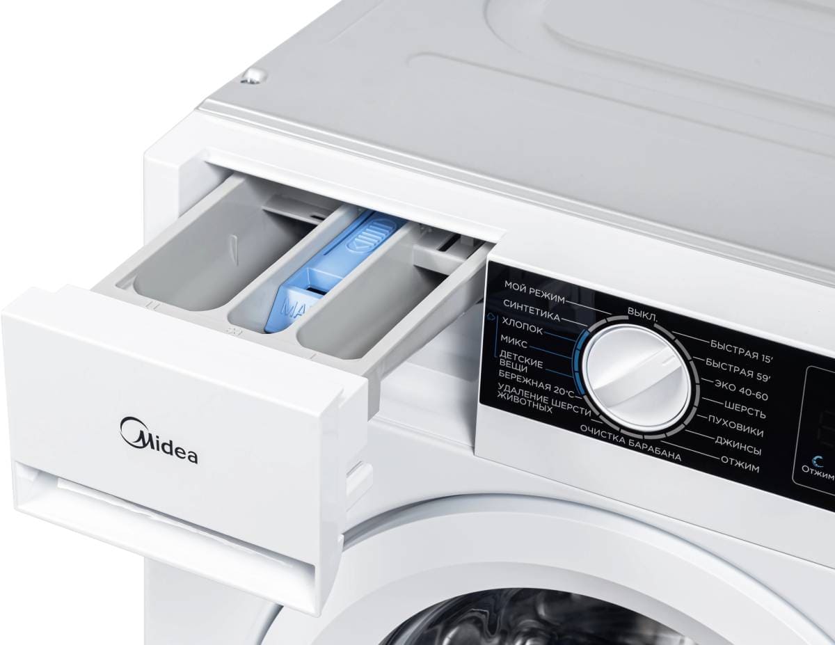 Цвет этой стиральной машинки — под навес вашего фасада. В данной модели Midea используется барабан сотовый. Мотор: Инверторный. Благодаря ему машина работает тише, потребляет меньше электроэнергии, сохраняя при этом необходимую мощность.