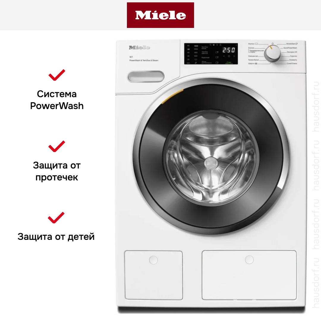 Цвет этой стиральной машинки — белый лотос. Ее можно установить в колонну с сушильной машиной, чтобы оптимизировать рабочее пространство и сделать удобный «прачечный» уголок. Обычно для этого необходимы специальные соединительные элементы — ищите их в разделе «Аксессуары». В данной модели Miele используется барабан HoneyComb. Мотор: ProfiEco. Благодаря ему машина работает тише, потребляет меньше электроэнергии, сохраняя при этом необходимую мощность.