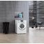 Габариты составляют 85×59,6×64,3 см — это стандартные размеры для техники с фронтальной загрузкой и повышенной вместимостью. Машину можно установить как отдельно, так и под столешницу. Также она подходит для вертикальной установки в колонну с сушильной машиной той же серии. Особенность модели — перевешиваемая дверца, благодаря которой можно подстроиться под любое расположение коммуникаций или особенности помещения. Корпус выполнен в белом цвете, дверца — белая с хромированной окантовкой, что делает прибор уместным в интерьере как классической, так и современной ванной. Отдельно стоит отметить панель управления: она расположена под удобным углом в 5°, за счёт чего все элементы видны даже при установке под столешницу. Длина сетевого кабеля и возможность отложенного запуска до 24 часов позволяют гибко организовать процесс стирки без жёсткой привязки ко времени суток.
