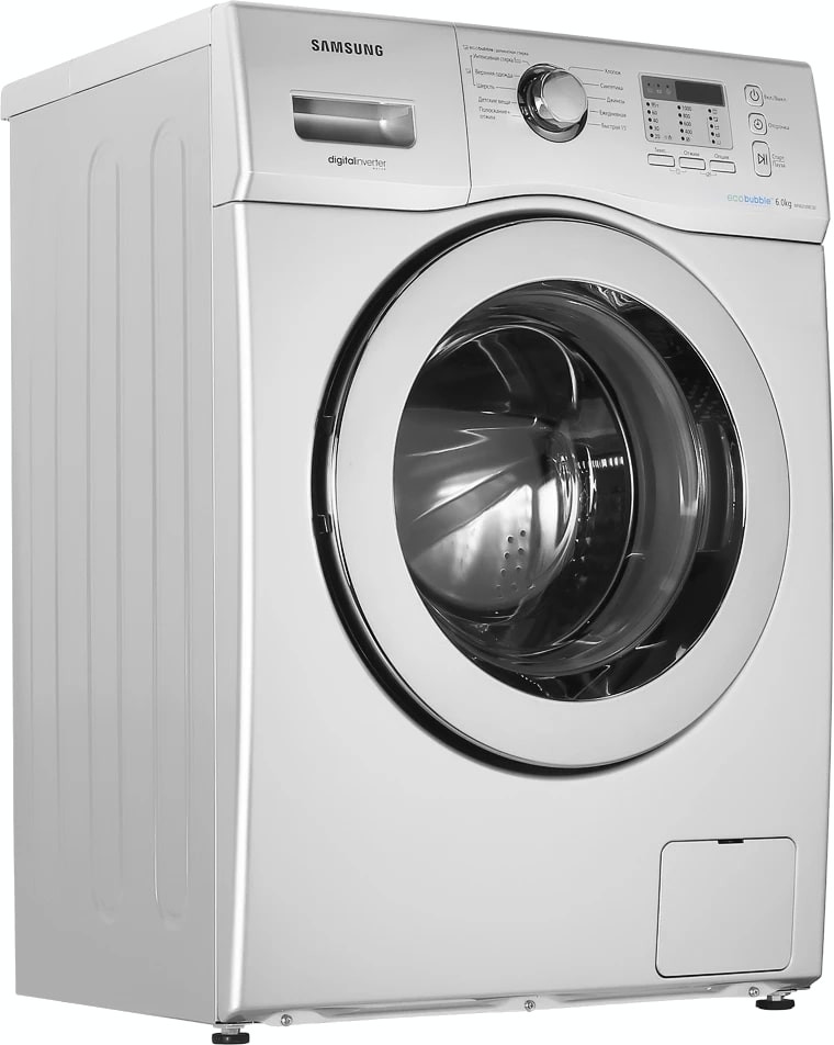 Стиральная машина Самсунг WF 602U0BCSD выпущена в стандартной конфигурации — устанавливается отдельно, поэтому рекомендуем заранее выделить для нее место в квартире. Благодаря классической фронтальной загрузке она привычна и удобна даже для тех, кто не очень разбирается в технике. За счет небольшой глубины данную модель предпочитают владельцы небольших квартир, студий. В барабан помещается не так много вещей за один раз, но тем, кто не любит копить вещи или просто мало стирает, будет достаточно. Максимальная загрузка: 6 кг.