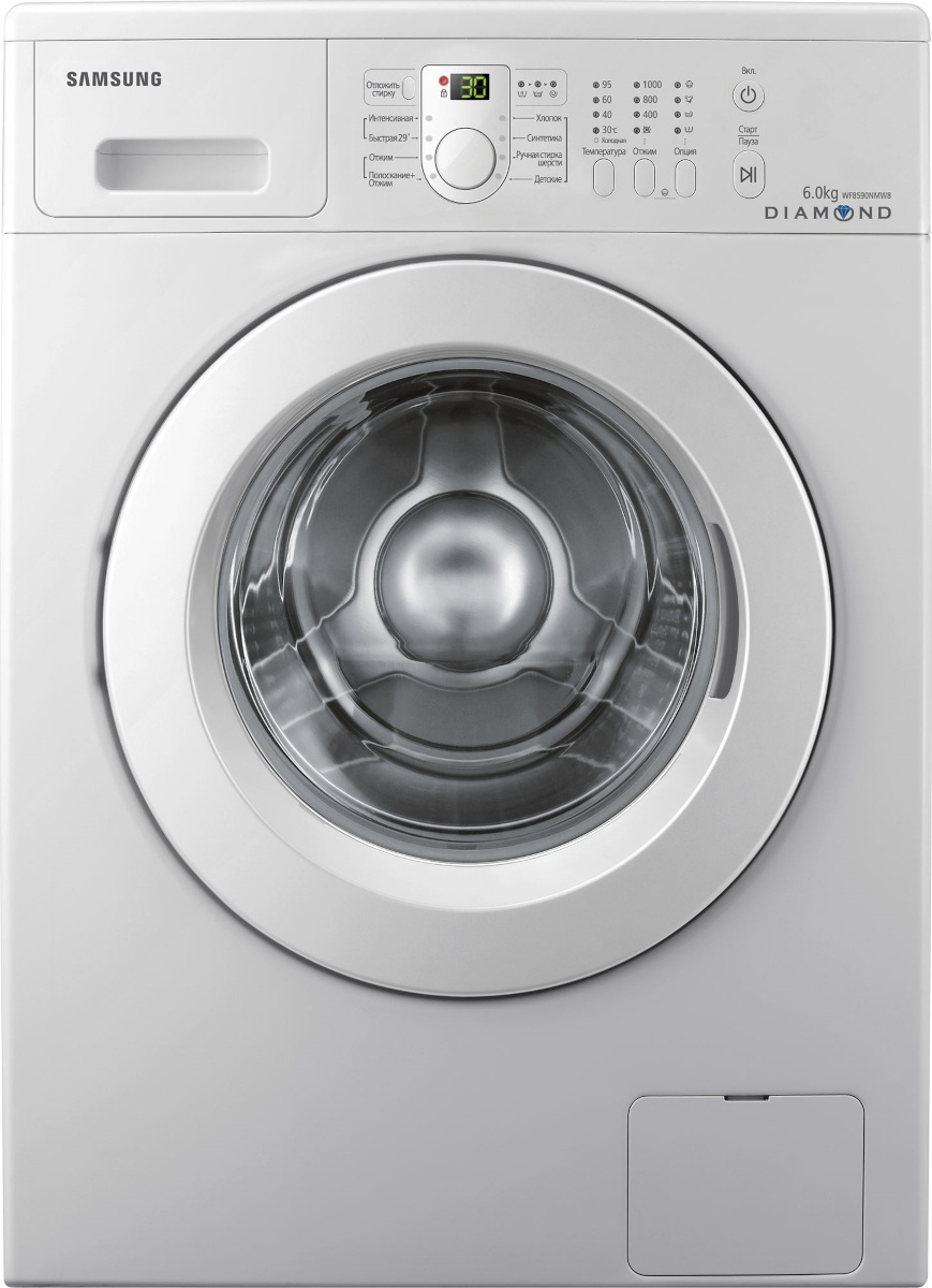Стиральная машина Самсунг WF 8590NMW8DYLP выпущена в стандартной конфигурации — устанавливается отдельно, поэтому рекомендуем заранее выделить для нее место в квартире. Благодаря классической фронтальной загрузке она привычна и удобна даже для тех, кто не очень разбирается в технике. За счет небольшой глубины данную модель предпочитают владельцы небольших квартир, студий. В барабан помещается не так много вещей за один раз, но тем, кто не любит копить вещи или просто мало стирает, будет достаточно. Максимальная загрузка: 6 кг.