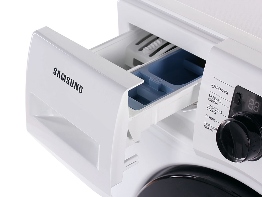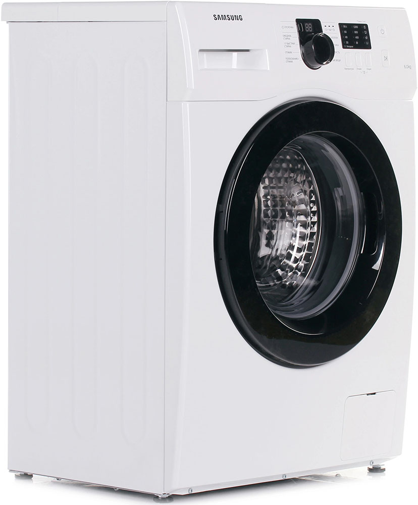 Стиральная машина Самсунг WF60F1R2F2W выпущена в стандартной конфигурации — устанавливается отдельно, поэтому рекомендуем заранее выделить для нее место в квартире. Благодаря классической фронтальной загрузке она привычна и удобна даже для тех, кто не очень разбирается в технике. За счет небольшой глубины данную модель предпочитают владельцы небольших квартир, студий. В барабан помещается не так много вещей за один раз, но тем, кто не любит копить вещи или просто мало стирает, будет достаточно. Максимальная загрузка: 6 кг.