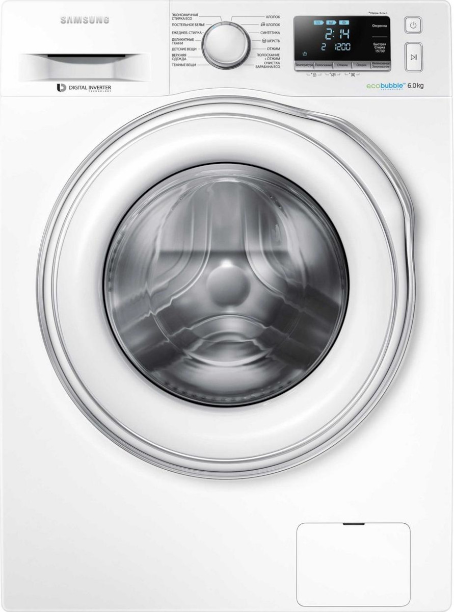 Стиральная машина Самсунг WW 60J6210FW выпущена в стандартной конфигурации — устанавливается отдельно, поэтому рекомендуем заранее выделить для нее место в квартире. Благодаря классической фронтальной загрузке она привычна и удобна даже для тех, кто не очень разбирается в технике. За счет небольшой глубины данную модель предпочитают владельцы небольших квартир, студий. В барабан помещается не так много вещей за один раз, но тем, кто не любит копить вещи или просто мало стирает, будет достаточно. Максимальная загрузка: 6 кг.