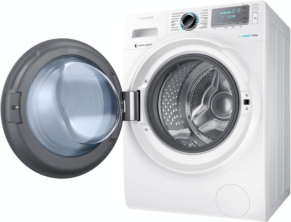 Стиральная машина Самсунг WW 80H7410EW выпущена в стандартной конфигурации — устанавливается отдельно, поэтому рекомендуем заранее выделить для нее место в квартире. Благодаря классической фронтальной загрузке она привычна и удобна даже для тех, кто не очень разбирается в технике. Вместительность барабана средняя, поэтому ее хватит и для одиночек, и для семей с детьми. Максимальная загрузка: 8 кг.