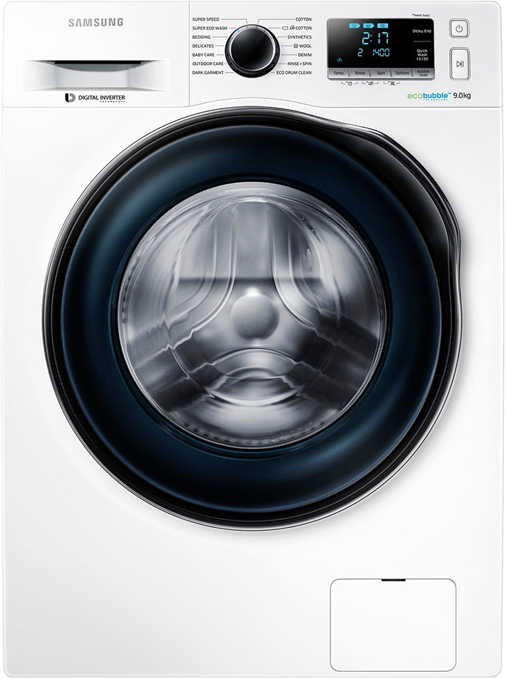 Стиральная машина Самсунг WW 90J6410 CW выпущена в стандартной конфигурации — устанавливается отдельно, поэтому рекомендуем заранее выделить для нее место в квартире. Благодаря классической фронтальной загрузке она привычна и удобна даже для тех, кто не очень разбирается в технике. За счет небольшой глубины данную модель предпочитают владельцы небольших квартир, студий. Вместительность барабана средняя, поэтому ее хватит и для одиночек, и для семей с детьми. Максимальная загрузка: 9 кг.