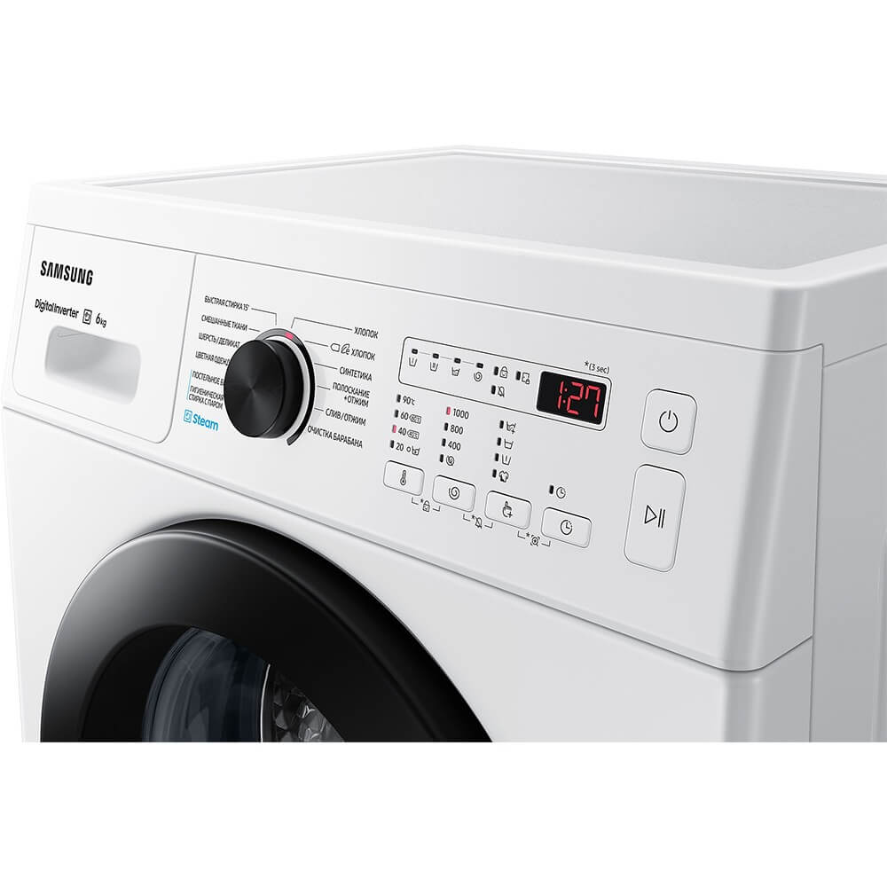Стиральная машина Самсунг WW60AG4S00CE выпущена в стандартной конфигурации — устанавливается отдельно, поэтому рекомендуем заранее выделить для нее место в квартире. Благодаря классической фронтальной загрузке она привычна и удобна даже для тех, кто не очень разбирается в технике. За счет небольшой глубины данную модель предпочитают владельцы небольших квартир, студий. В барабан помещается не так много вещей за один раз, но тем, кто не любит копить вещи или просто мало стирает, будет достаточно. Максимальная загрузка: 6 кг.