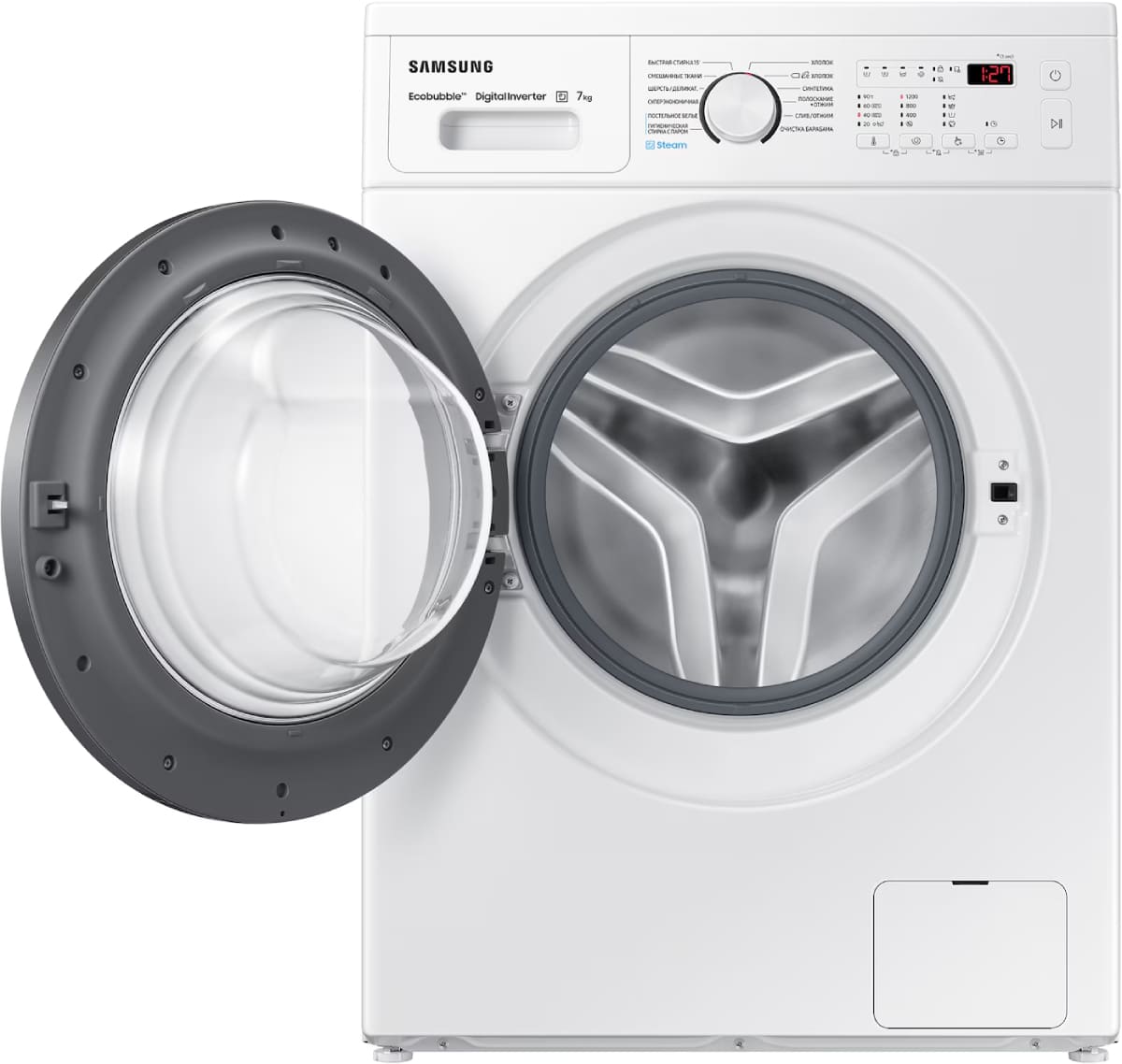 Стиральная машина Самсунг WW70AG4S21VE/LD выпущена в стандартной конфигурации — устанавливается отдельно, поэтому рекомендуем заранее выделить для нее место в квартире. Благодаря классической фронтальной загрузке она привычна и удобна даже для тех, кто не очень разбирается в технике. За счет небольшой глубины данную модель предпочитают владельцы небольших квартир, студий. Вместительность барабана средняя, поэтому ее хватит и для одиночек, и для семей с детьми. Максимальная загрузка: 7 кг.