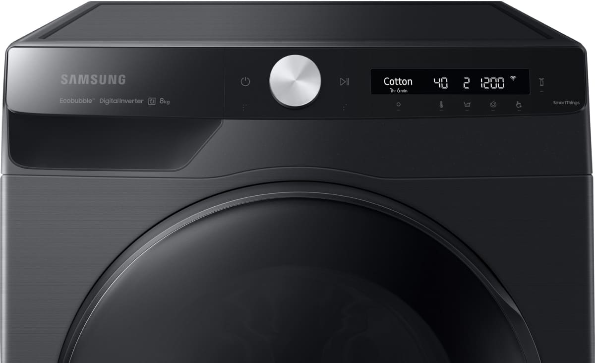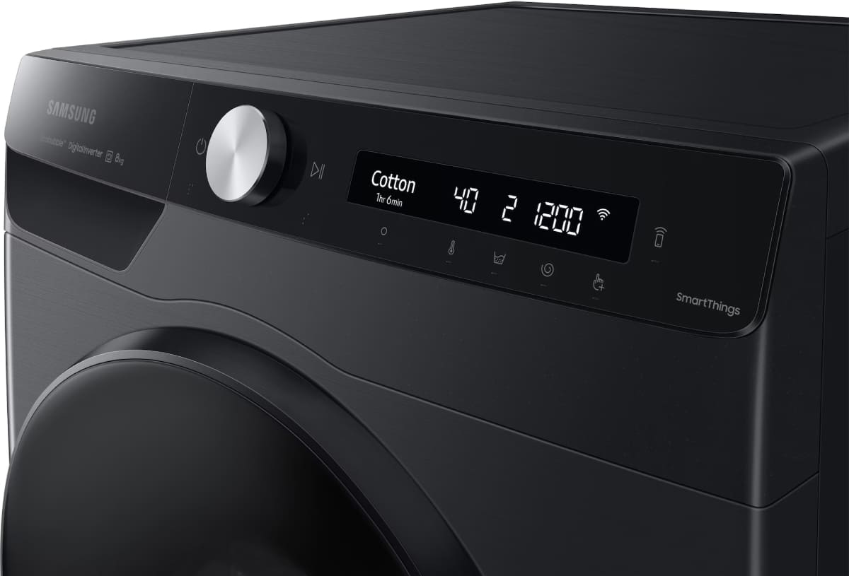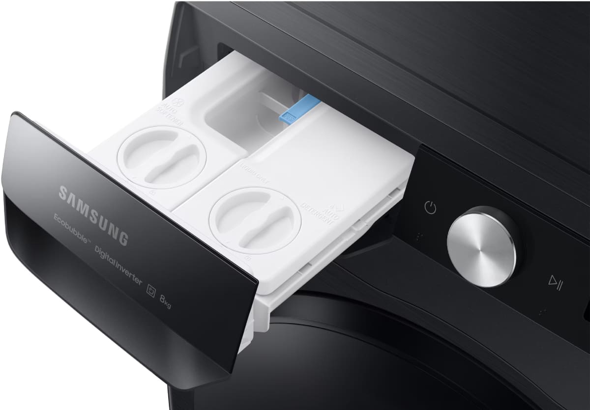 Цвет этой стиральной машинки — черный. В данной модели Samsung используется барабан Swirl. Мотор: Инверторный. Благодаря ему машина работает тише, потребляет меньше электроэнергии, сохраняя при этом необходимую мощность.
